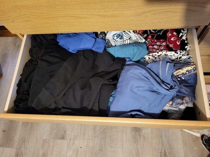 15.30 Börjar röja lite i mina klädlådor