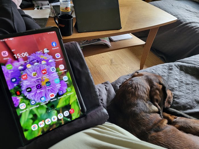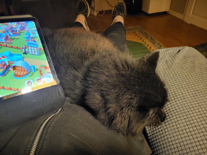 22-tiden Avslutar dagen med en bild på Giron i mitt knä medan jag spelar Farmville3
