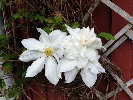 Min vita klematis blommar med dubbla och enkla blommor samtidigt Läs vidare